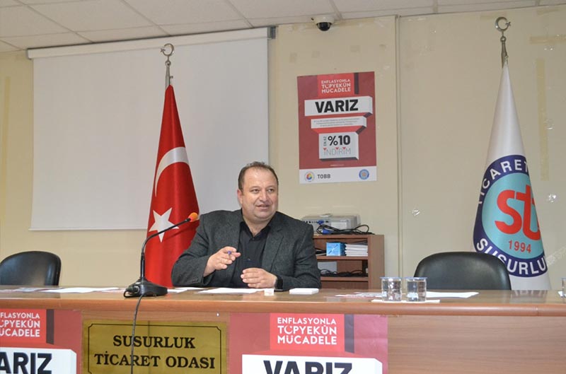 Yönetim Kurulu Başkanımız İlker KURT, 16 Ekim 2018 günü gerçekleştirilen basın toplantısında, ulusal ve yerel basın aracılığı ile tüm üyelerimizi "Enflasyonla Topyekün Mücadele" kampanyasına destek olmaya davet etti. Asgari 3 ay süre ve en az %10 indirimle kampanyaya katılım sağlanabileceğini belirten KURT, burada dikkat edilmesi gereken hususun enflasyonla mücadele ederek ülke ekonomisine katkı sağlamak olduğunu ve bu kampanyaya katılımın da tamamen gönüllülük esasına dayalı olduğunu dile getirdi. Belirlenen çeşitli mal ve hizmetlerde en az %10 indirim yapılmasını öngören kampanyaya TOBB öncülüğünde Susurluk Ticaret Odası olarak tam destek verildiğini belirtti.