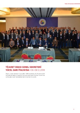 Odamız Genel Sekreteri Yücel SARI, TOBB tarafından 06-08 Aralık 2018